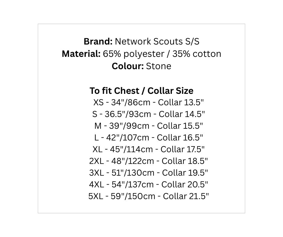 The Adult / Network Scouts official short sleeve uniform shirt is a lightweight key element of uniform and has a single breast pocket, a pleated back and button down collar. This item can be worn by all members of the Adult / Network Scouts sections.