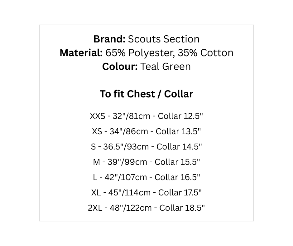 The Scout long sleeve shirt is a lightweight key element of uniform and has a single breast pocket, a pleated back and buttoned down collar. This item can be worn by all members of the Scout section.